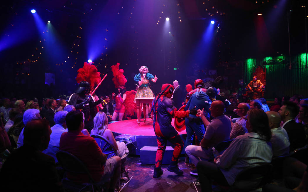 Wanda Widdles said she didn’t have $4,000 to spend for entertainment for “Absinthe’s” 4,000th show Friday night.Instead, the production’s co-host said she spent the 4,000 pennies gifted to her by the show’s character producer, The Gazillionaire, on an assortment of guest stars: A group of authentic, costumed buskers from the Strip.