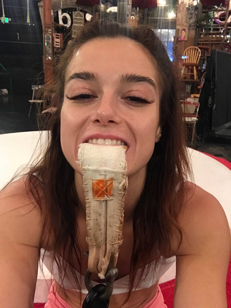 “Oh, I was motivated,” she said. “I was trying to win a million dollars. If someone says you can win a million dollars by hanging from your teeth, you’ll do it, right?”