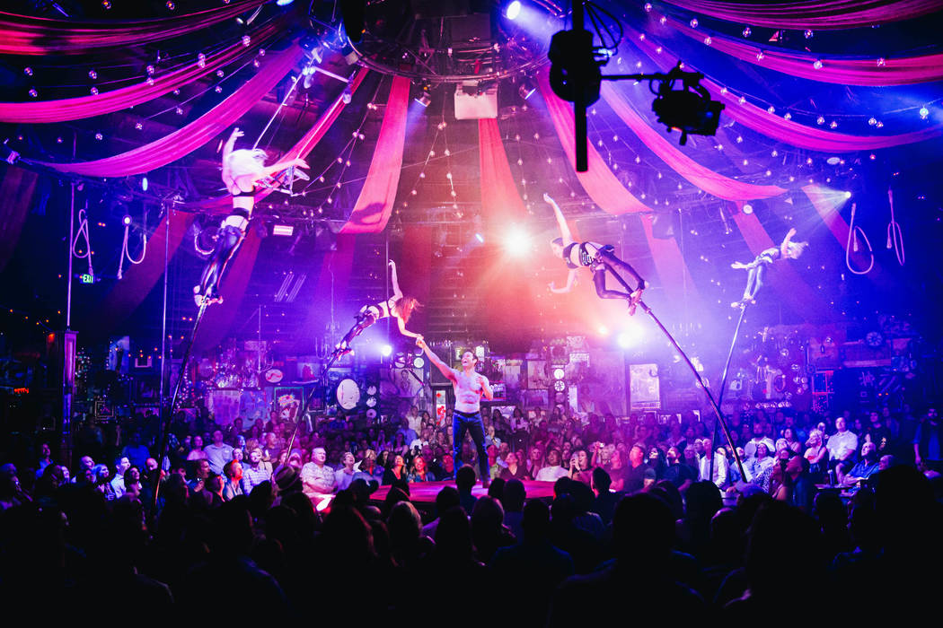 This sort of sway-pole act is more familiar in arenas, and has been used in Madonna’s “Rebel Heart” tour in 2014-15. “Absinthe” tried developing the act around that time, too, but a pole snapped in rehearsal and the idea was tabled. It’s back in rotation now, another upgrade to a show that brushes up against sellouts twice a night, every night, at Caesars Palace.