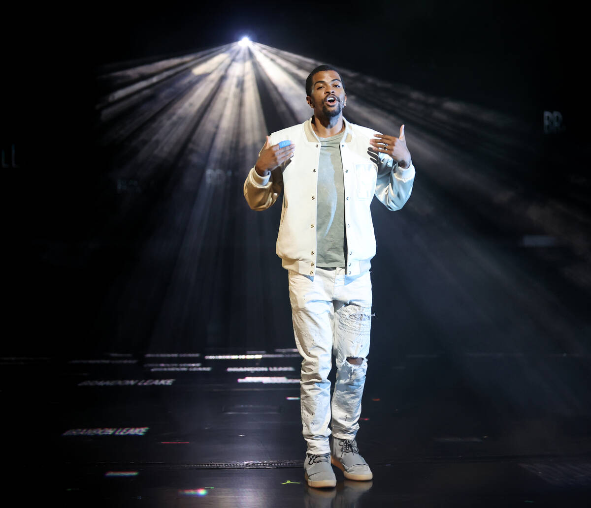 Brandon Leake sits in the Luxor Theater, talking of his career as a talker, and stops. He hears something the interviewer doesn’t: voices from the aisle several feet away. “Hang on, I’ll wait for that to stop.”