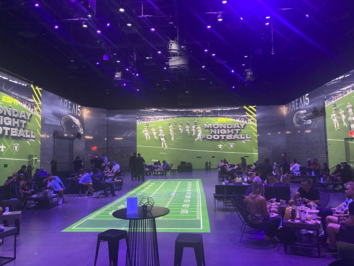 The Las Vegas opener was projected 360 degrees around the building, his being a new “four wall” entertainment option in Vegas. A scaled-down football field was shown in the middle of the floor.