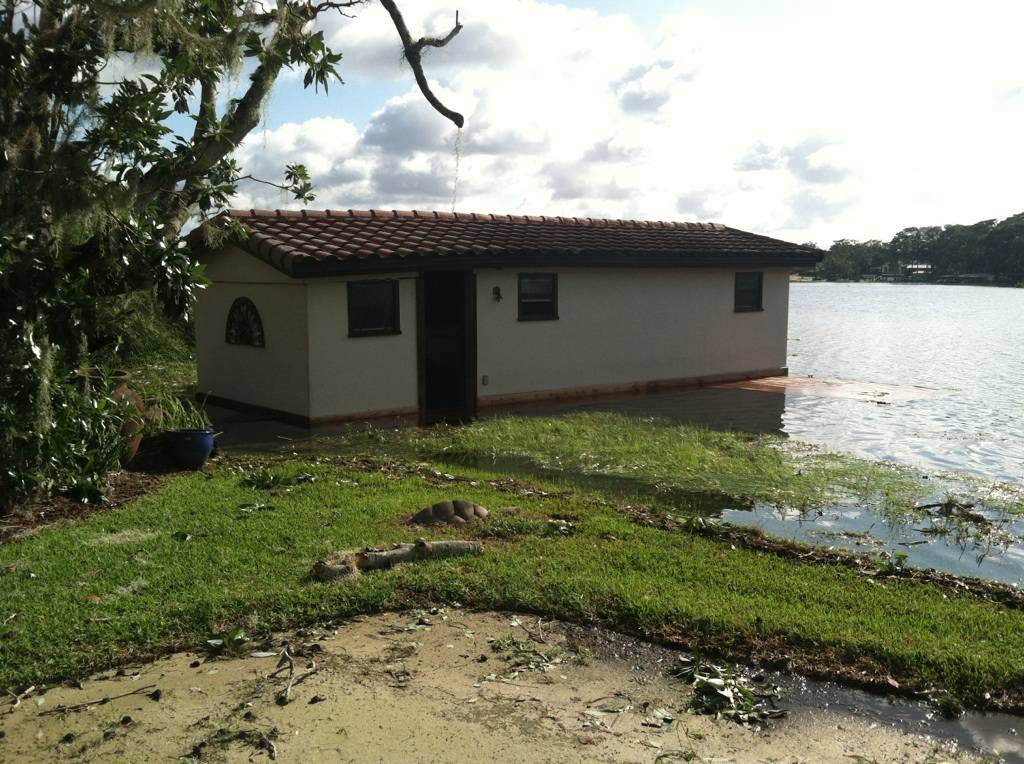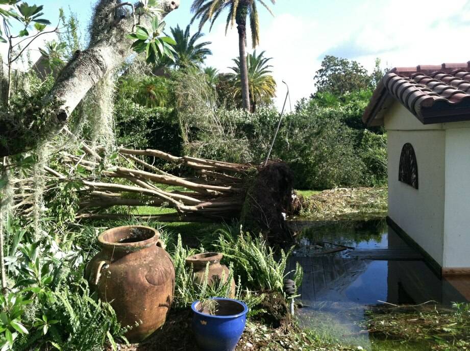 That residence narrowly escaped serious damage during Hurricane Irma over the weekend. Thompson sent a couple of photos of the home, shown standing just above flood waters and surrounded by several toppled palm trees. “I got very lucky,” he said. And the popular prop comic says he plans to keep the bit in the show, reasoning that comedy outlasts tragedy.