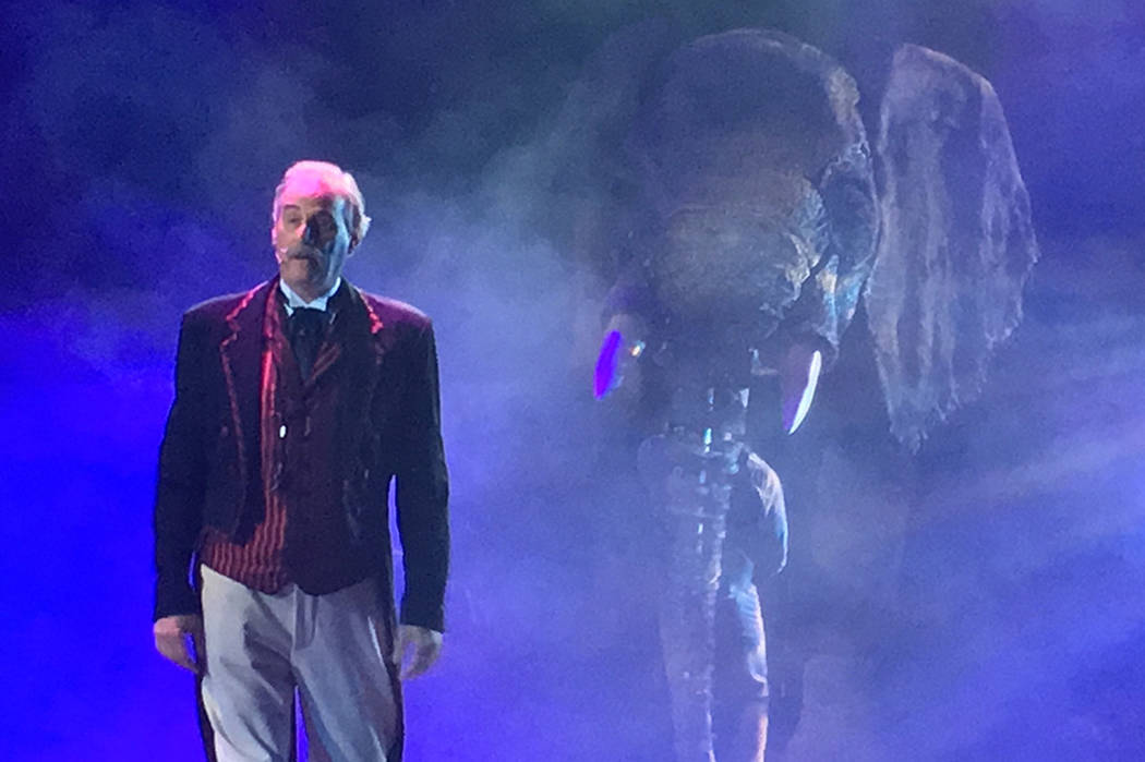 I’ve not ventured to the theater since “Jersey Boys” closed last September andI’ve been curious about this show ever since I heard that the puppeteers behind the Broadway play “War Horse” designed the production’s artificial elephants. The very real human stage performer David Williamson, playing ringmaster Willy Whipsnade, comes to VegasVille with a solid reputation among his contemporaries.