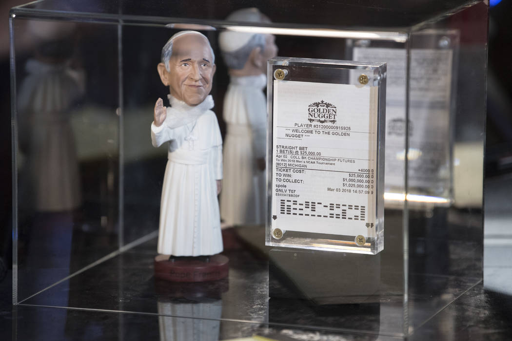 On Saturday, the D hosted a watch party at Longbar that was livestreamed on the VSiN gaming network. Stevens was there with his wife, Nicole, to his left. To his right sat a Pope Francis bobblehead — a “bobblepope,” if you will — inside a glass box, blessing Stevens’ $25,000 ticket.