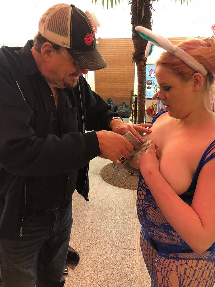 “I know a little bit about this,” Jillette, a veteran street performer, said to the woman. He offered her a $20 tip. She said, “Can you staple that to me?” And he did, over her right breast. Once a carny, always a carny. Jillette updates this odyssey on his Facebook page, should you want to follow.”