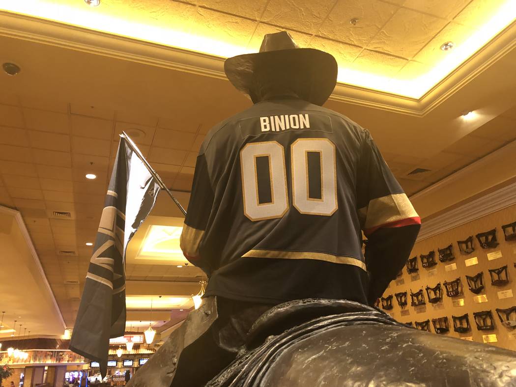And today, the statue honoring the great Benny Binion is outfitted in a Vegas Golden Knights jersey.