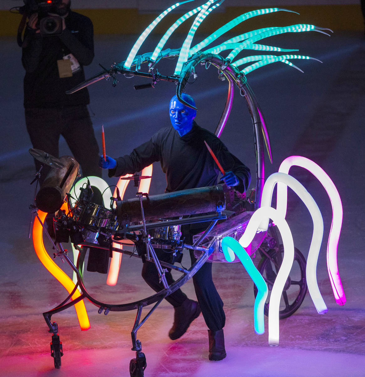 The silent, blue-painted troupe with the bald skull caps was created in 1987 by New York performance artists Phil Stanton, Chris Wink and Matt Goldman. Wink left the company in 2018 to take on a lead creative role at the Area15 entertainment complex in Las Vegas.
