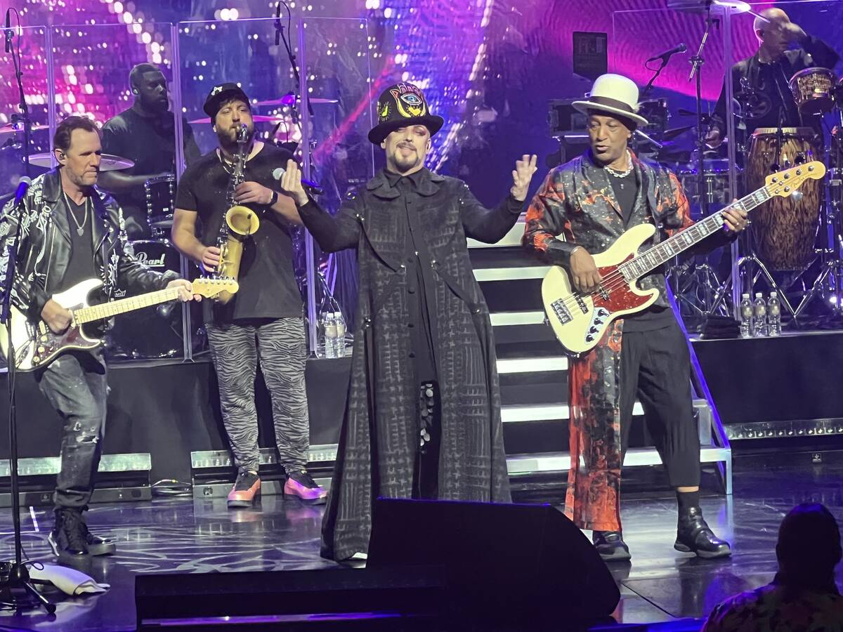 We’ll take that production, certainly, in any Culture Club return to Vegas. But the scene after Saturday’s performance also was something of a show. George welcomed his old buddy Matt Goss to the post-show hang in the theater’s green room. The two knocked around ideas for how they might cross-promote their respective productions on the Strip. It was one of those moments where you thought, “How did we get here?”