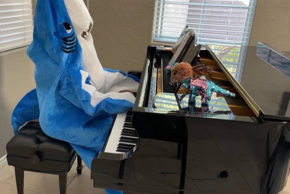 Vegas musician Angela Chan-Stopa had some fin, or should we say fun, in auditioning for the show. She added a clip of herself wearing a Left Shark costume while playing a song from the show in her audition video. Chan actually has two Left Shark costumes. She and former “Le Reve” dancer Wyatt Hopkins wore the shark outfits during a Positively Arts “Get Launched” show at Luxor’s HyperX Esports Arena Las Vegas in the fall of 2019.