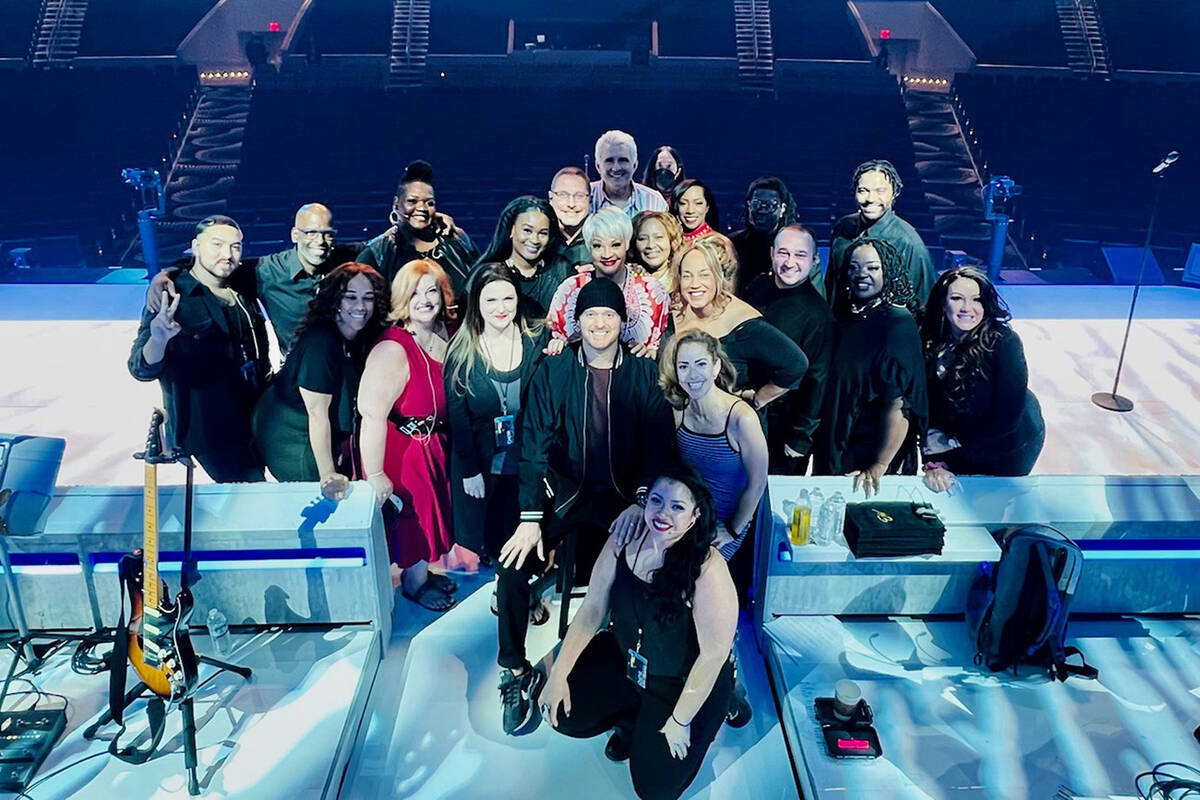 It’s a Las Vegas show when Michael Bublé is singing “Smile” and you look down the line of choir singers and say, “Hey, that’s Michelle Johnson, Janien Valentine, Sina Foley, Naomi Mauro …” Then the string players, “That’s Crystal Yuan, Jennifer Hellewell, Carissa Werner …”
