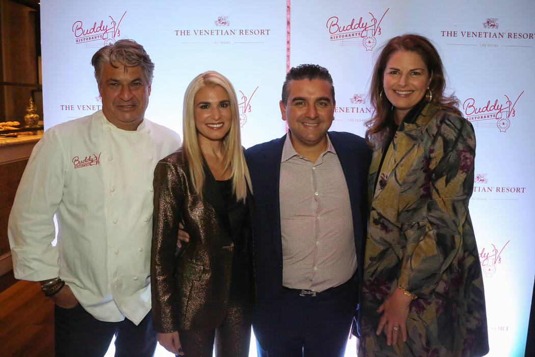 Valastro and his wife, Lisa, were joined by partners Kim Canteenwalla and Elizabeth Blau at what was dubbed “Cocktails & Cake.” A five-tier confection designed with stacked Valastro’s cookbooks and a combo pizza (all of it cake and all edible) was delivered from Valastro’s Carlo’s Bakery across the walkway. The gentlemen from Human Nature made it from Sands Showroom to sing “Under the Boardwalk.”
