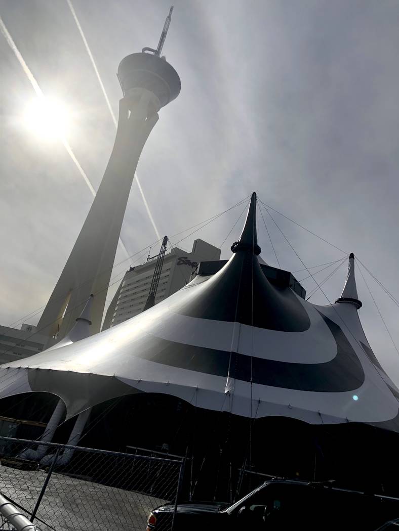 So a 200,000-square-foot, black-and-white tent is up in my neighborhood, at the base of the Stratosphere. This is the future home of “Celestia,” a new international production from Intrigue Shows set to open in mid-January. The production calls to mind the original Cirque du Soleil show “Nouvelle Expérience” that played the Mirage parking lot in October 1993.