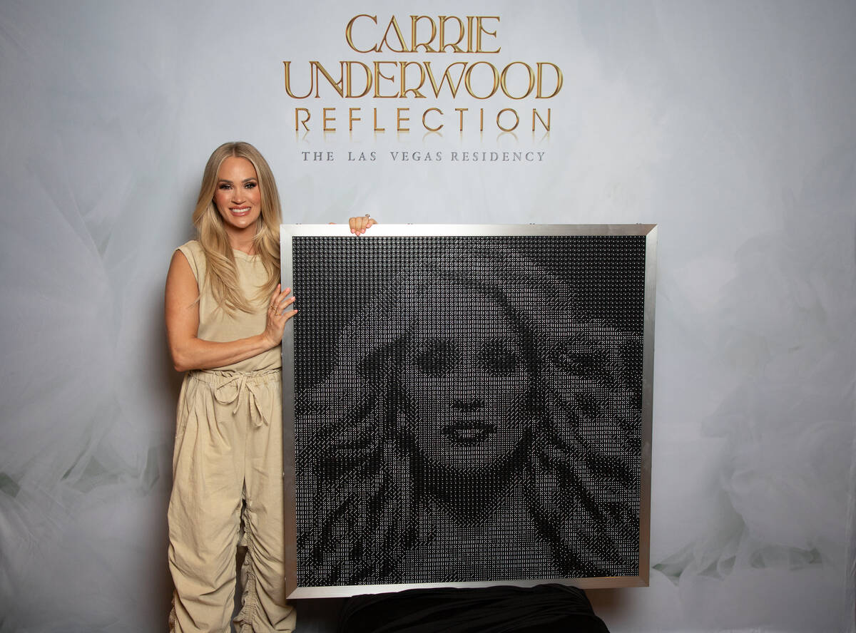 The resort’s roll of the bones has paid off in Underwood’s “Reflection” production. Knowing this, officials from AEG Presents presented Underwood with a portrait of 6,400 dice, created by artists Ben Hoblyn and Ross Montgomery of the custom-art company Dice Ideas.