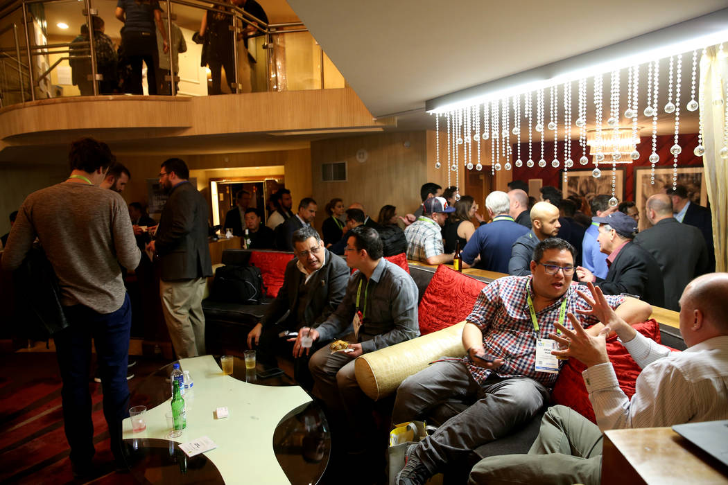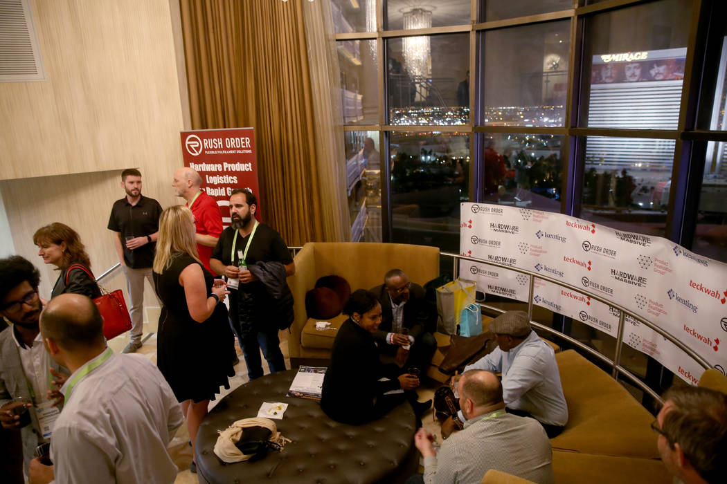 Thought the suite is commonly booked for bachelor parties and NFL fantasy draft parties, Wednesday’s event drew comparatively business-focused conventioneers. One was a familiar figure in Las Vegas, Howard Kenig, managing director of Evr.Design.
