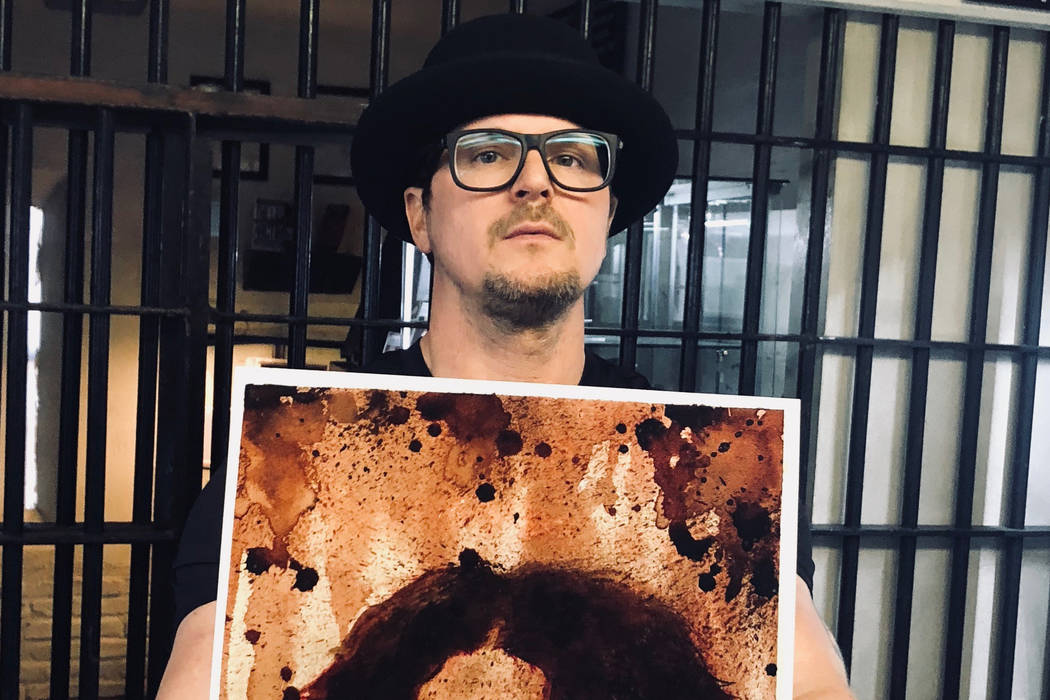 Bagans, proprietor of Zak Bagans’ Haunted Museum at 600 E. Charleston Road, has in his clutches a painting of Manson with Manson’s ashes in the eyes. This is a common medium for the painting’s artist, Ryan Almighty, who uses human blood (in this instance, his own) and human remains to create his artwork.