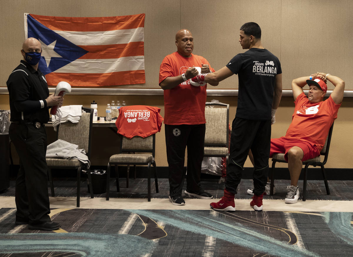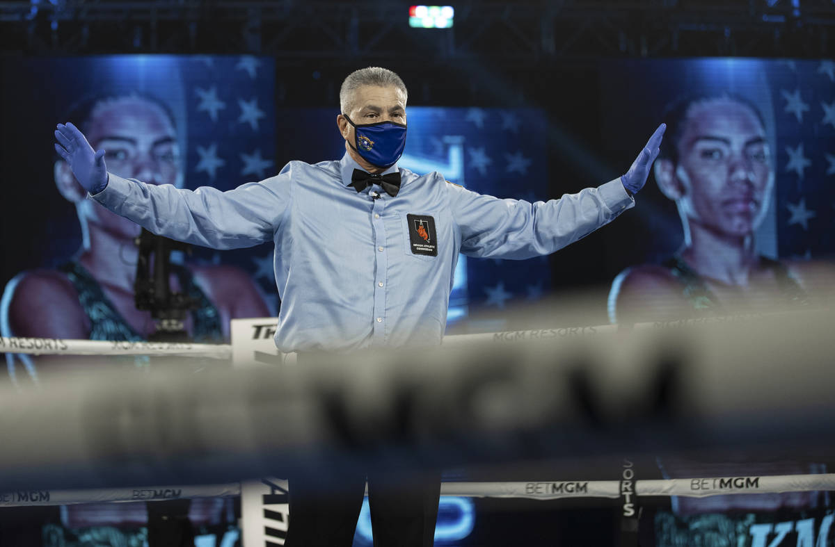 “With nobody there, it’s a little surreal. There’s no energy coming your way from fans, when you’re used to sports fans who are loud, obnoxious, crazy, ruthless,” said Mark Shunock, the Top Rank’s ring announcer and the well-known Vegas entertainer who runs The Space performance venue. “You really have to be prepared, we go through each introduction line-by-line to make sure it’s right. But it is so different. I don’t know how the fighters deal with not having that reaction.”