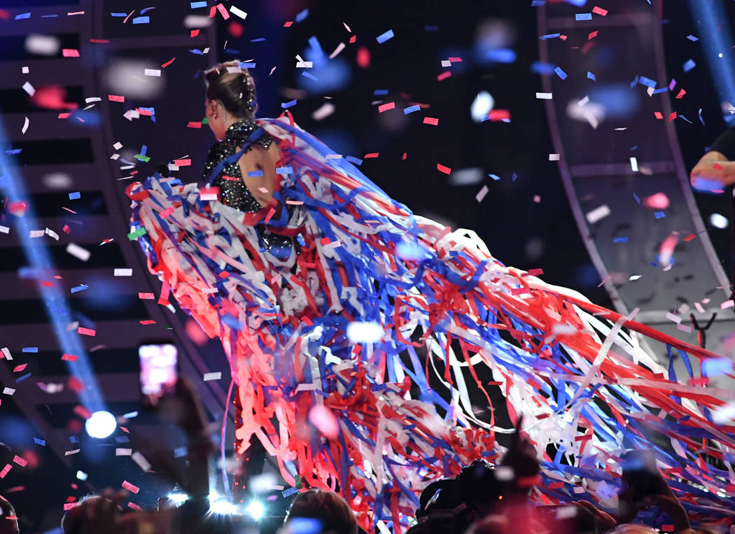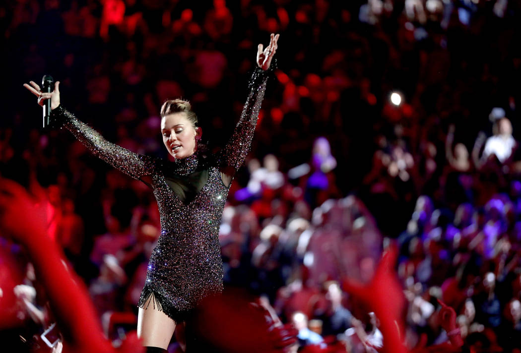 Cyrus refers to her footwear. “We’ve never done this song before, but I am wearing these boots …” and launches into “These Boots Were Made for Walking,” and the crowd eats that one up. Cyrus’s massage unity is the glorious, set-closing “Party In The U.S.A.”