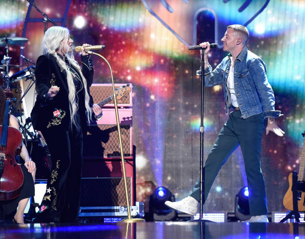 The platinum-blond vocalist just called up Macklemore — surprise, y’all! — for “Good Ole’ Days.” She closed with “Praying,” saying, “It’s a tough song for me to sing,” speaking apparently of her emotions. She performed it powerfully, singing, “I’ll bring thunder, I’ll bring rain, oh. When I’m finished, they won’t even know your name.” She says the song is all about healing, even the healing of someone who has caused pain.