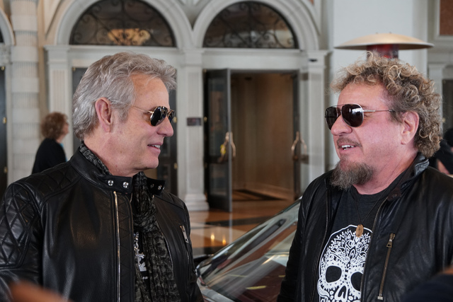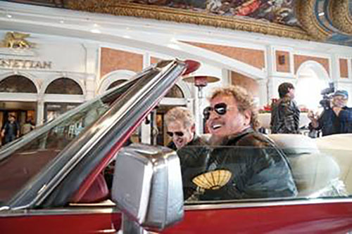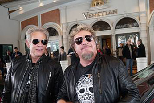 On Friday, the Red Rocker himself, Sammy Hagar, checked in with Don Felder during Felder’s run with Styx at Venetian Theater. The two reportedly tooled around the property in Hagar’s Cadillac and strummed through “Hotel California” in a suite. All the action was recorded for the AXS-TV series “Rock &Roll Road Trip With Sammy Hagar.”