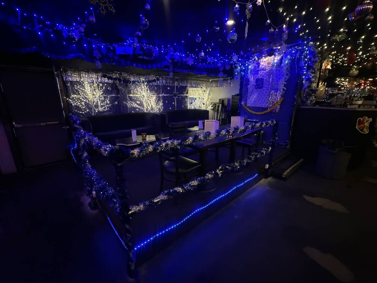 The OG Sand Dollar on Polaris and Spring Mountain is again splashed with Christmas decor in its annual Miracle on Spring Mountain theme. What is usually the VIP deck is in the blue of Hanukkah.