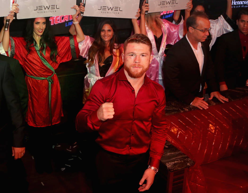 Having fought to a draw with Gennady “GGG” Golovikin at T-Mobile Arena, Saul “Canelo” Alvarez hit Jewel at Aria for his traditional after-party appearance. Canelo entered the club at about 1:30 a.m., sporting a few abrasions (we expect all of them from Saturday’s bout) and wearing black slacks and a blood-red shirt seemingly made of silk.