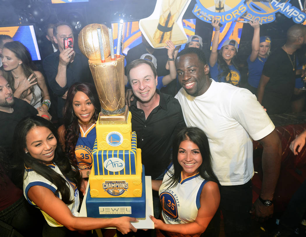 Finals MVP Kevin Durant was typically in the eye of the frivolity, joined by co-owners Joseph Lacob and Peter Guber. Encore Beach Club was the most recent reported sighting from the Warriors’ casino crawl. Green, Klay Thompson, JaVale McGee, Andre Iguodala, Matt Barnes and Ian Clark were lavished with attention and expensive bottled alcoholic beverages.