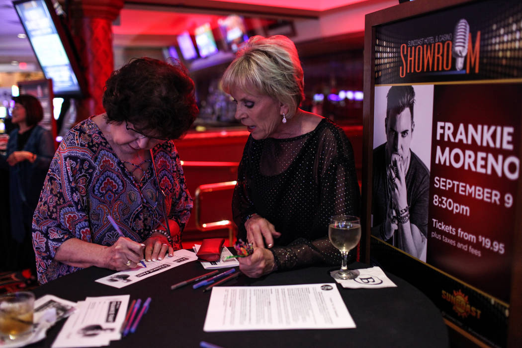 But not all of Moreno’s venues have been sign-friendly. Fan club members don’t bring signs to Myron’s Cabaret Jazz at The Smith Center, concerned they would be turned away at the door. Strict front-of-house policies at Suncoast Showroom, where Moreno performed last weekend, forbid any signs from being raised.