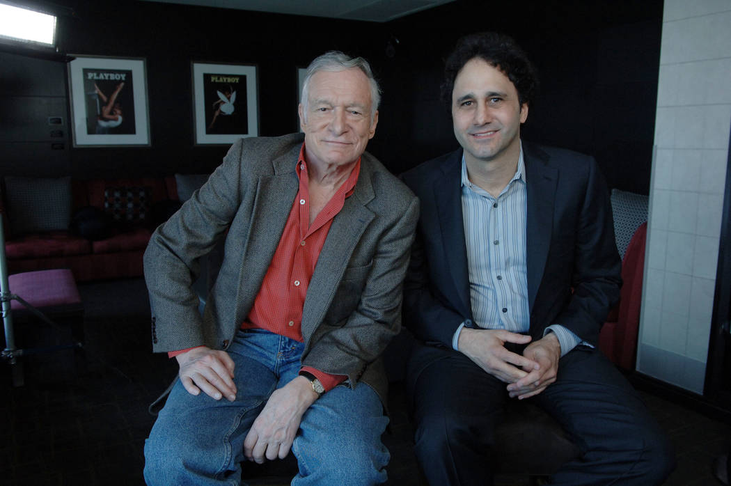 Publisher Hugh Hefner and Palms Casino owner George Maloof pose during his 82nd birthday celebration during an exclusive portrait session in The Hugh Hefner Suite in The Palms Casino Resort on April 05, 2008 in Las Vegas, Nevada. Denise Truscello WireImage