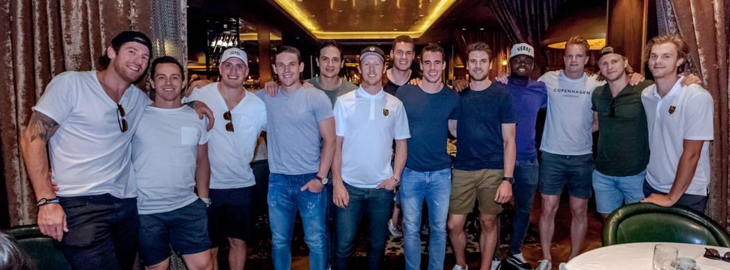 Those who attended the team dinner at Andiamo have become familiar Las Vegans: Alex Tuch, James Neal, Jonathan Marchessault, Nate Schmidt, Eric Haula, Luca Sbisa, Cody Eakin, Brayden McNabb, Reilly Smith, Shea Theodore, Malcolm Subban, Oscar Dansk, William Karlsson and Jon Merrill.