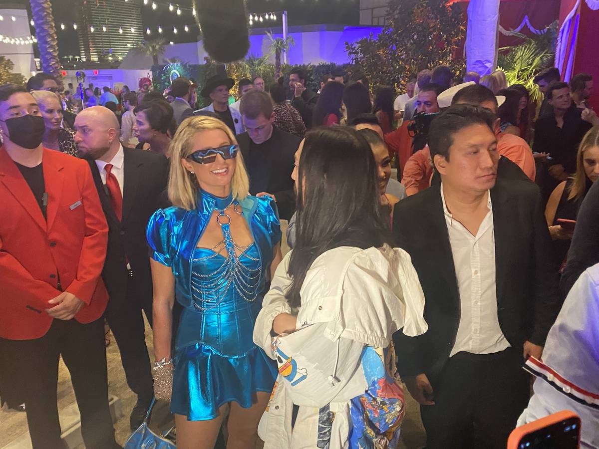 Paris Hilton, the resort heiress, former reality show phenomenon and current DJ held forth at the Resorts Worlds Las Vegas opening Thursday night. During a set at Ayu Dayclub pool deck, Hilton donned a turquoise-colored, “Toxic”-inspired outfit in support of Britney Spears during the red-themed event.