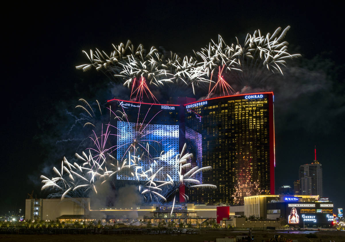 Afterward, incoming Colosseum at Caesars Palace headliner Usher, superstar DJ Steve Aoki and headlining comic (and vaunted roastmaster) Jeffrey Ross were among the stars jamming a VIP cabana. This crew convened just as Resorts World star DJ headliner Tiësto took the stage a little after the 11 p.m. fireworks show and dazzling LED display on the hotel tower.