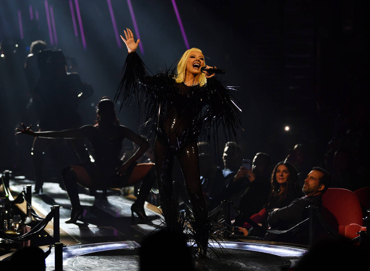 Aguilera performed club-refashioned versions of “Fighter,” “Dirrty,” “Genie in a Bottle,” “Lady Marmalade,” Leslie Gore’s “You Don’t Own Me,” a spin of Shirley Bassey’s Bond-themed “Diamonds are Forever,” Cher’s “Welcome to Burlesque” from the 2010 movie, and (a must) Patti LaBelle’s thumping party anthem “Lady Marmalade.”