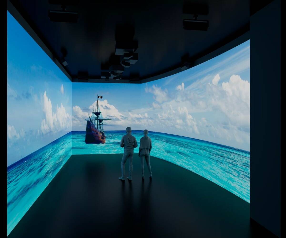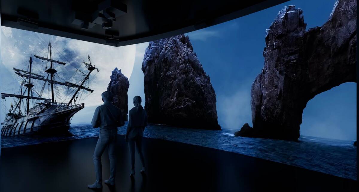 Groups of up to 55 can board “The Arctic Ghost Ship: A Quest in Search of the Lost Rum,” which is a 12-to-15-minute animated experience in which guests sip cocktails/non-alcoholic beverages with a projected Captain Flint McGreggor as they search for his wayward booze.
