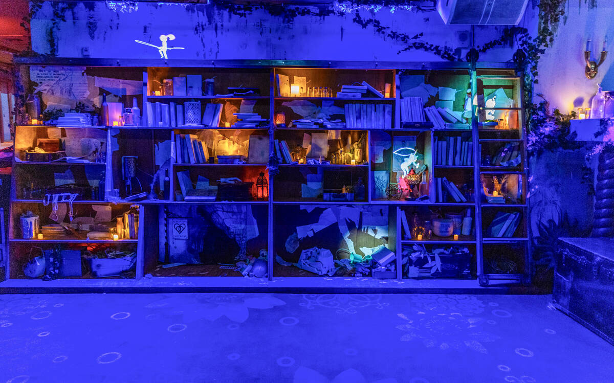 Built into the hotel’s former wedding chapel on the hotel’s mezzanine level, Particle Ink was previously showcased as Speed of Light in a refashioned warehouse downtown across from The English Hotel. The House of Shattered Prisms project opened at Luxor in April.
