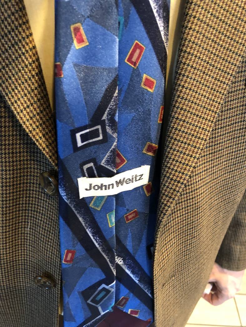 We wait 20 minutes for this $10.65 order while Dale idles the Passat in the parking lot. As we wait, Harry and I leaf through a copy of the RJ; Harry is trying to find his name and seems miffed it’s not there. His blue John Weitz tie, decorated with colored rectangles, is again flipped backward.