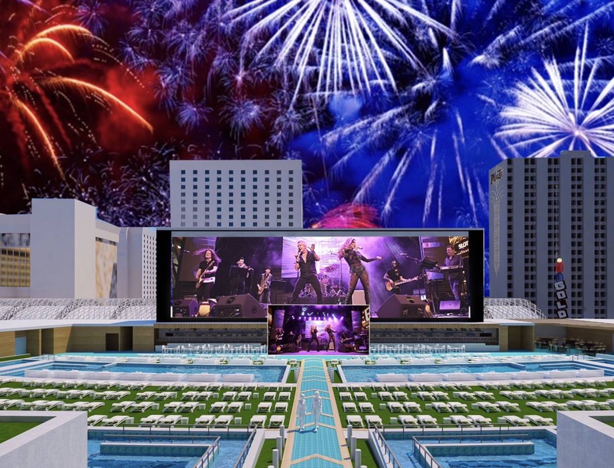 As we face staggering COVID numbers, know that the show will be distanced and following state-mandated protocols. Stadium Swim is set for a total capacity 4,000. The plan is to invite a socially distant crowd of 400 to 500. The resort’s signature entertainment annex covers three levels and features a 40-foot-tall HD screen. The night will also serve as the unveiling of Legacy Club on the hotel’s top floor.