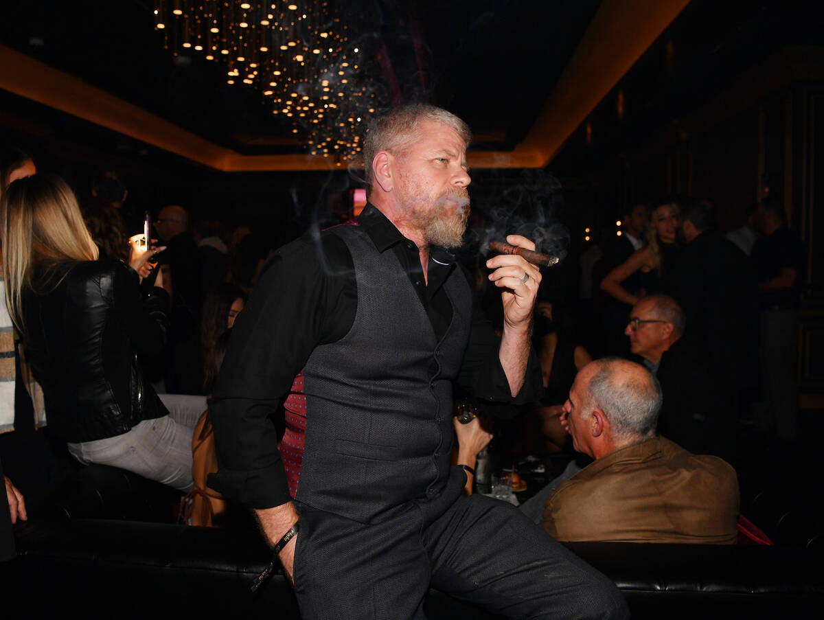 The “old Vegas” crew was further represented by Clark County sheriff and gubernatorial candidate Joe Lombardo, The Siegel Group founder Stephen Siegel, Resorts World CEO Scott Sibella (chatting with Tyson about possibly staging Tyson’s one-man show at Resorts World) and the storied Vegas entrepreneur and mover/shaker/high-limit gambler Jeff Beacher. The cigar scene would not have been complete without Beach, and he didn’t disappoint, wearing his formal red sweatshirt, on his way to the tables.