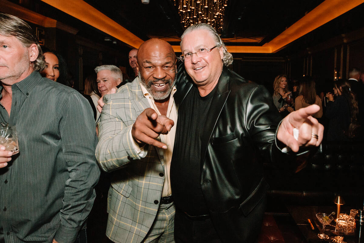 That group held court with such famous folk as boxing legend Mike Tyson, actor Michael Cudlitz (“Southland,” “The Walking Dead”), social media kingpin Dan Bilzerian (he’s in one the shorts and white T-shirt), soccer star Cobi Jones, poker great Phil Ivey, boxer Ryan Garcia, and ex-NBA star Charles Oakley. Earlier in the week, NHL legend Wayne Gretzky and baseball star/broadcaster Alex Rodriguez stopped by to christen their private booze lockers.
