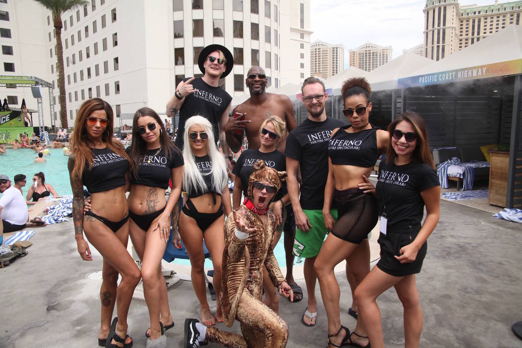 — Ex-UNLV Runnin’ Rebel star and Charlotte Hornets lottery pick Larry Johnson joined the cast of the Paris Theater stage show “Inferno” at Planet Hollywood on Saturday afternoon. Johnson also starred with the New York Knicks, and remains an icon in Vegas sports lore. He and the “Inferno” bunch were part of a pool party sponsored by Mountain Dew.