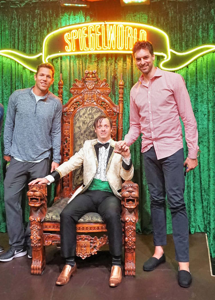 — Lakers coach Luke Walton and San Antonio Spurs center Pau Gasol turned up at the 10 p.m. performance of “Absinthe” on Tuesday. After encountering the 7-foot Gasol and 6-feet-8 inch Walton, The Gazillionaire said, “Tall people make me nervous.”