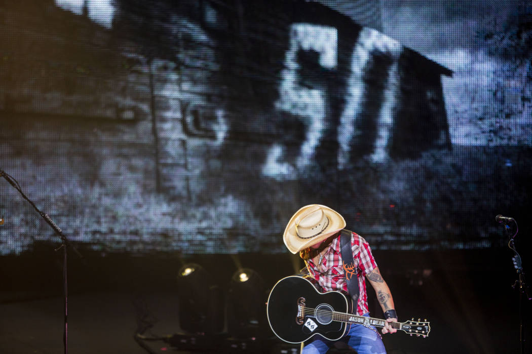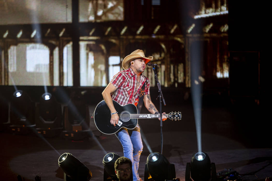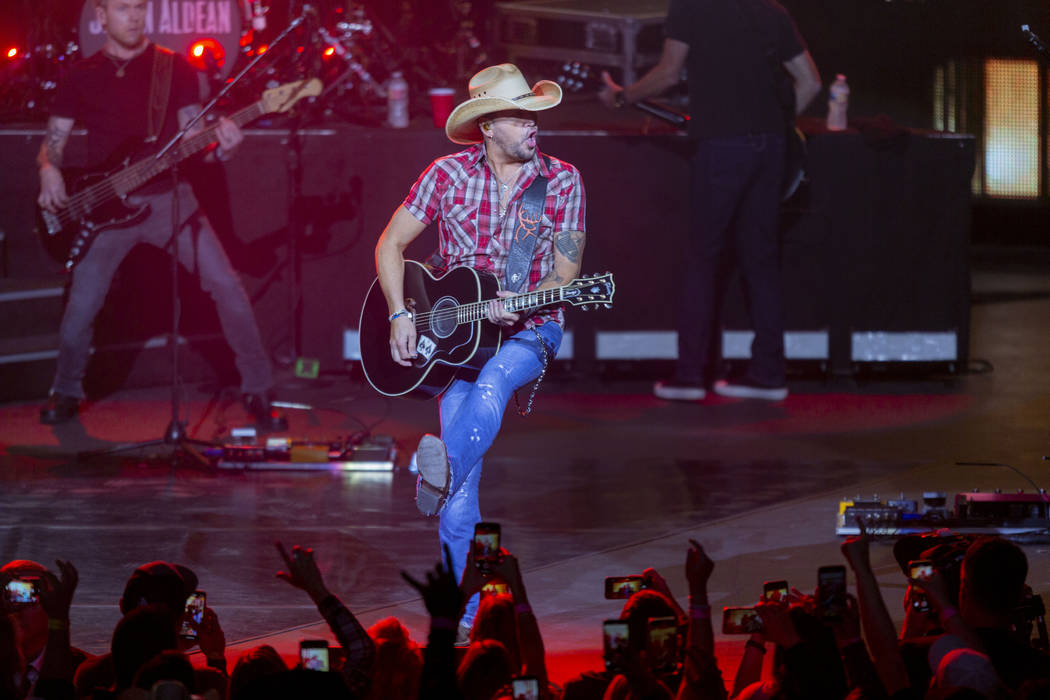 The crowd roared through that speech. Aldean then launched into “Crazy Town,” from his 2009 album, “Wide Open.”
