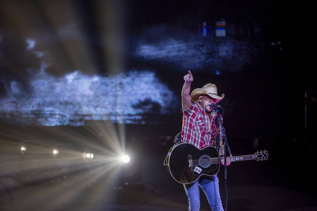 There was no mistaking Jason Aldean’s objective in his first show in Las Vegas since the Oct. 1 shooting tragedy. He made sure of that.