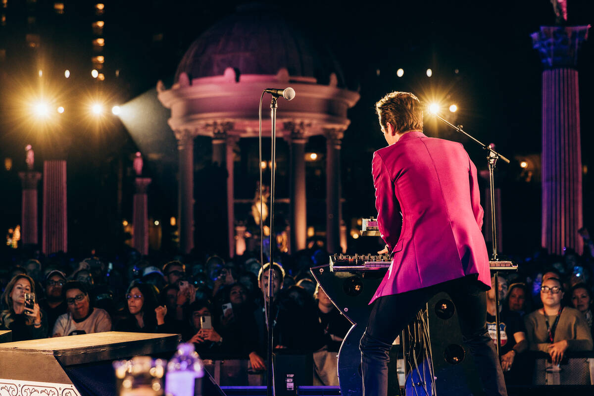 “I went to visit my dad in Boulder City and I hadn’t seen a desert sunset in a long time. It was emotional for me,” Flowers said a few minutes before The Killers’ Las Vegas Grand Prix Fan Fest performance at Caesars Palace’s Garden of the Gods. “It was beautiful.”