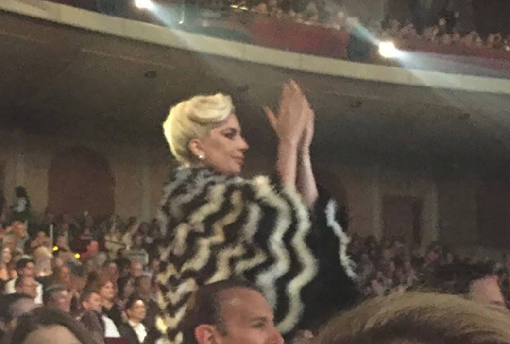 “This woman was walking by and I glanced over and went, ‘What? Wait! Yep, yep, that’s Lady Gaga,’ ” said Vegas singer Maren Wade, who happened to be seated a couple of rows and a few seats in front of Gaga at the performance. “She was Lady Gaga-ed out, with the black-and-white-striped coat, the sunglasses, her hair all done up.