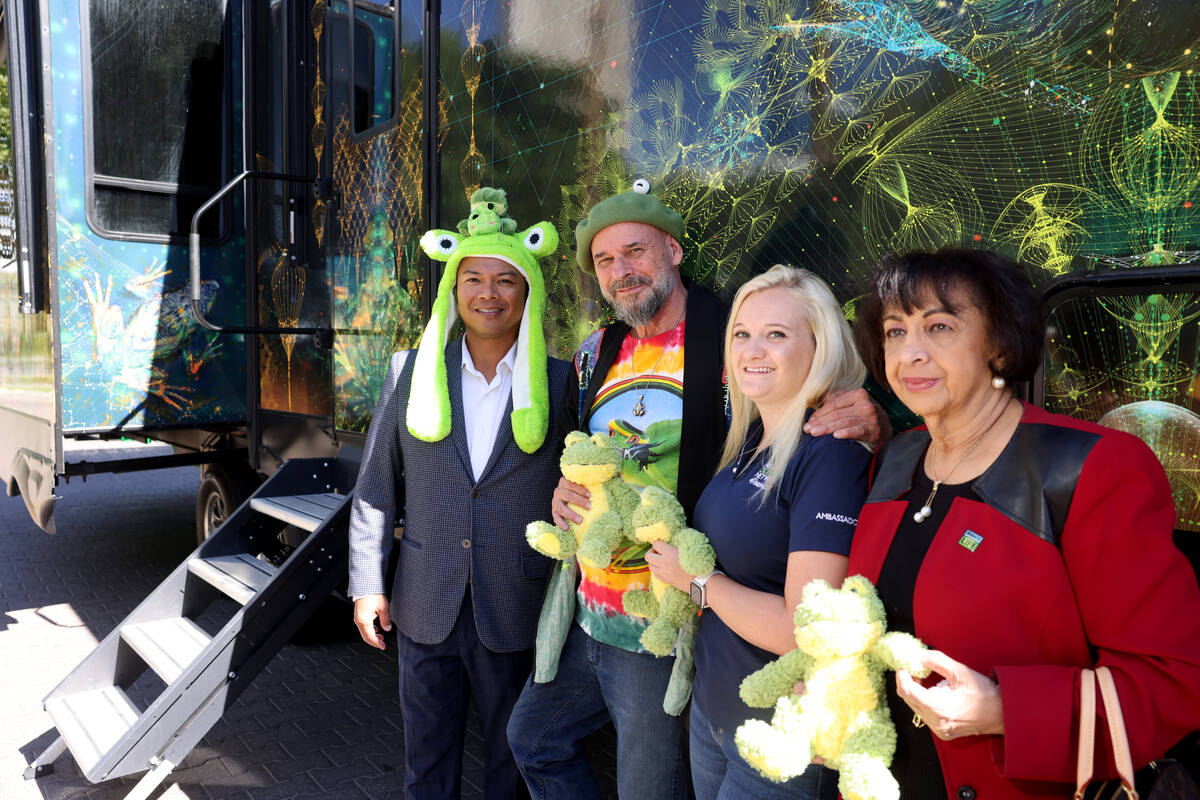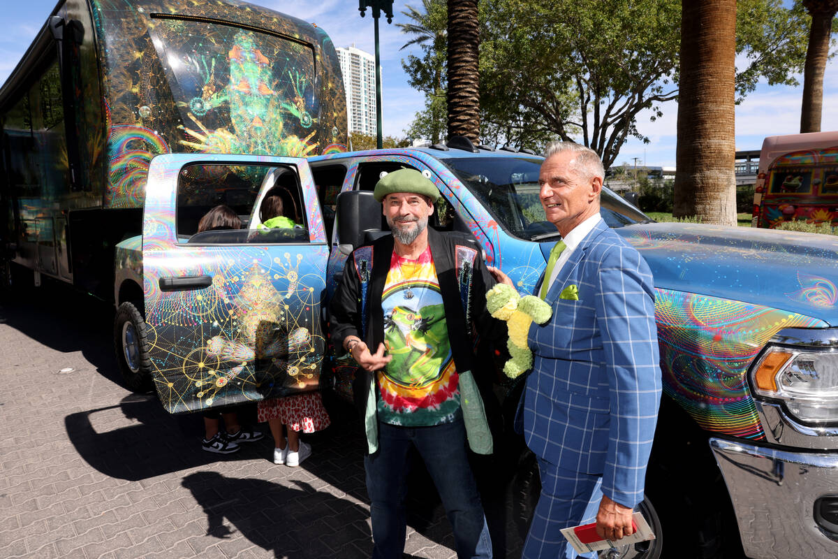 And frogs, of course, or “Frooogs” in his unique description. Laliberté brought his tripped-out Frooogs Camp to Las Vegas on Friday morning. Cirque du Soleil’s co-founder led a parade of more than 30 “Frooogy” custom-painted RV’s along the Strip, complete with a non-Frooogy Metro Police escort.