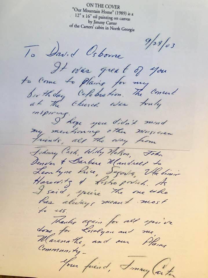 “I had an old 33-rpm album I’d recorded, so I signed it and put my phone number on it, stood in line for three hours to meet this man,” Osborn said. “Three weeks later, the pastor from the Baptist church called me and he says, ‘Jimmy really liked the record, would you like to come play for him?’ That’s how it started.”