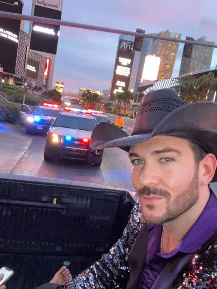 BIG shout out to @LVMPD for being good sports tonight. Just trying to spread some cheer and #Vegas vibes during these times. 🤠❤️🎤 pic.twitter.com/l9MuAaqlyh