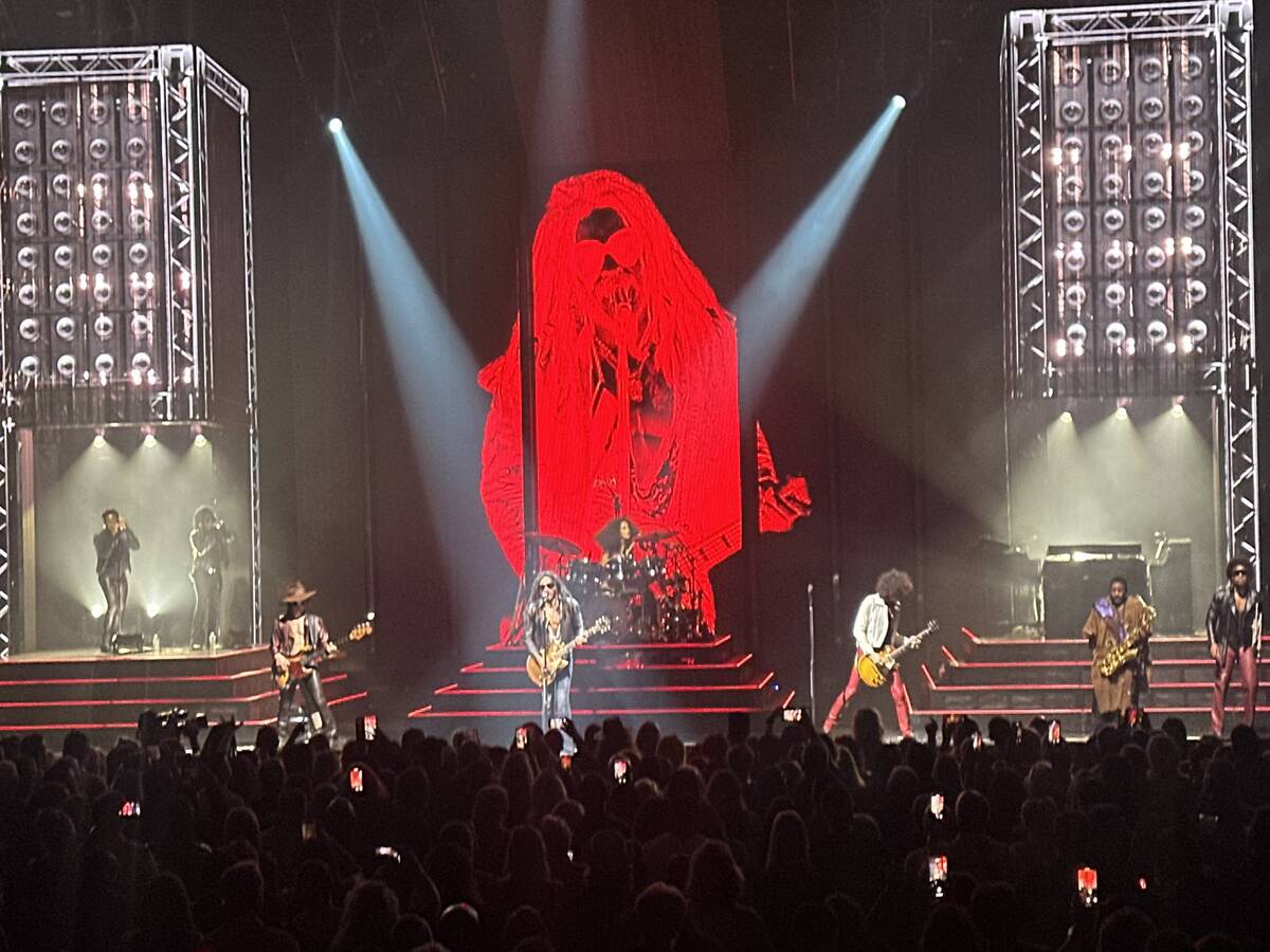 Halting the music mid-performance, Kravitz gave a shout to one “Mr. White,” a tutor and idol since he was a kid. This was Verdine White of Earth, Wind and Fire, grooving to great satisfaction in the VIP section.