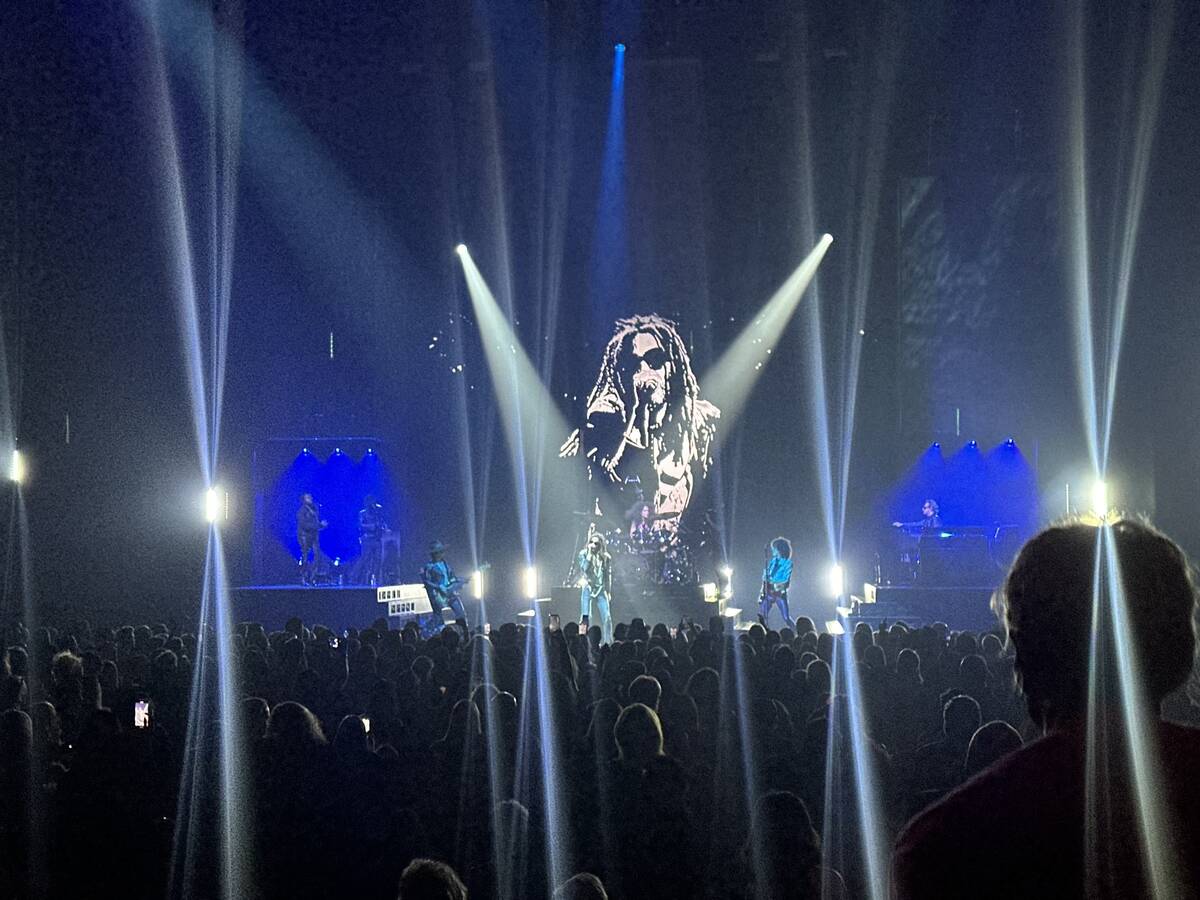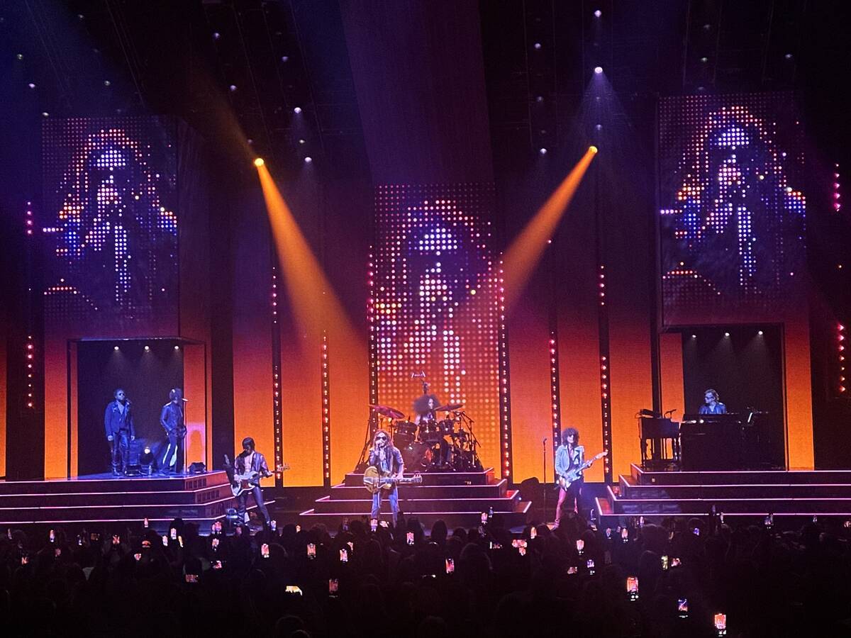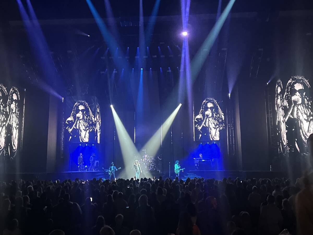 The headliner was featured in multiplicity across the LED screens, took to a platform at the side of the stage to play the bass, was depicted in cherry-red during “Always On The Run” and strummed the acoustic guitar for the beautiful “Believe.”