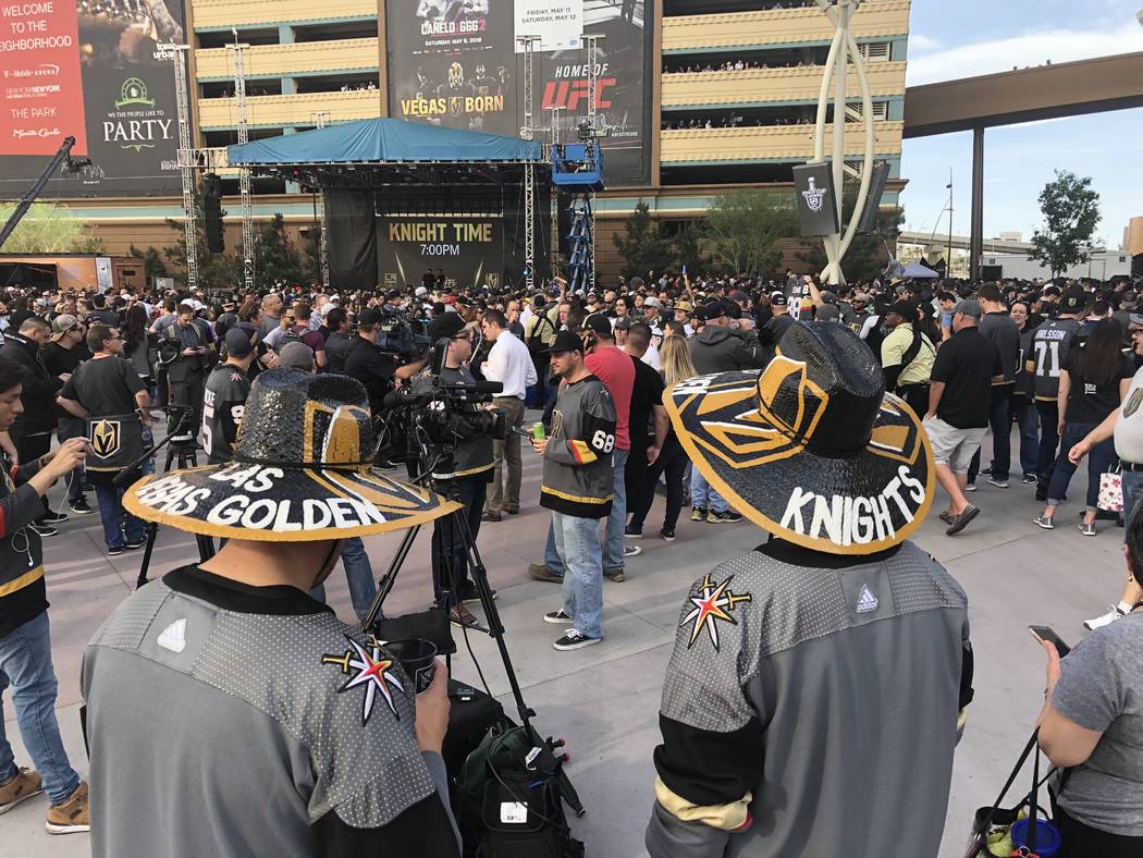 The Vegas Click organization of Golden Knights fans, which coordinate and organize on a closed Facebook community are sending 60 or so Golden Knights fans to Staples Center in L.A. for Games 3 and 4. At this writing, Sunday’s game package is sold out, but a few seats are left for Tuesday (bar stools are $135, seats are $200). The hot spot is Suite C17. Vegas will be represented there.